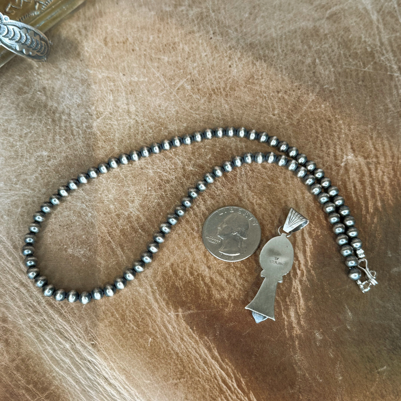 The Turquoise Squash Blossom & Sterling Silver Necklace set~Great Necklace for everyday wear! Classic piece for Your Collection~ 5mm Sterling Silver Pearls with Turquoise Squash Blossom Pendant. Wear together or separate for more ways to enjoy!