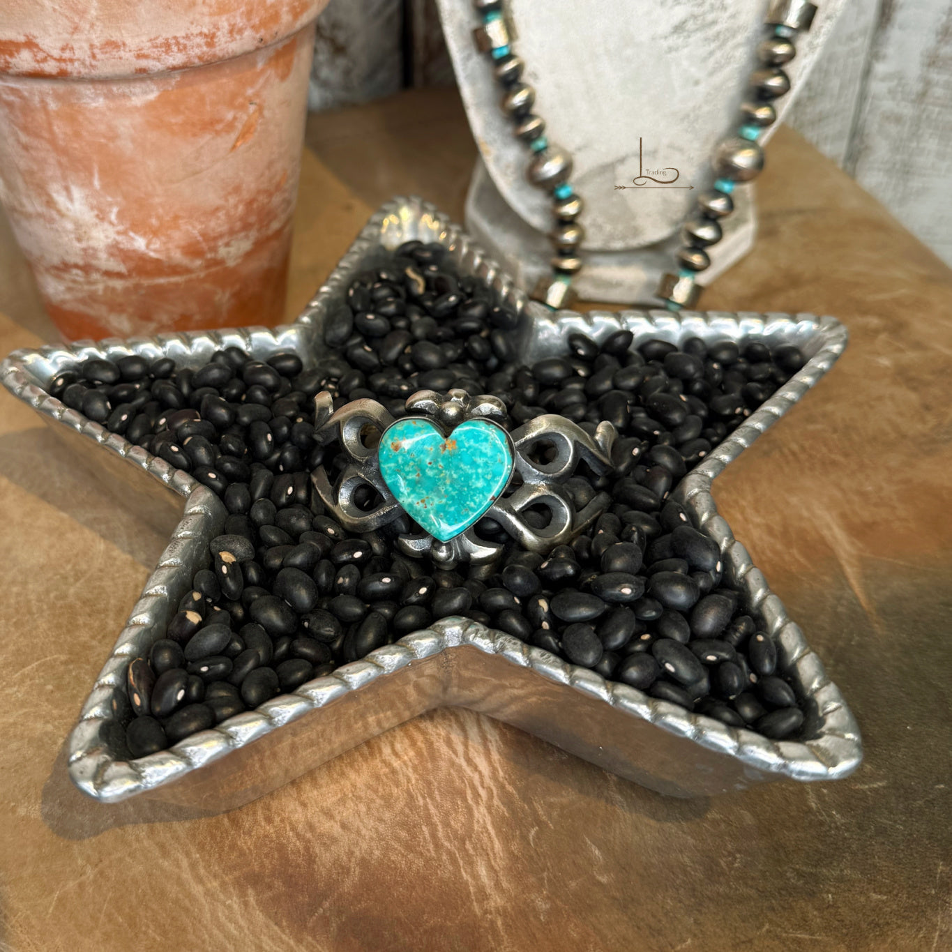 The Kingman Turquoise Heart Cuff ~ Kingman Turquoise Heart with Sterling Silver Scroll designed cuff. A Must for Your Collection~