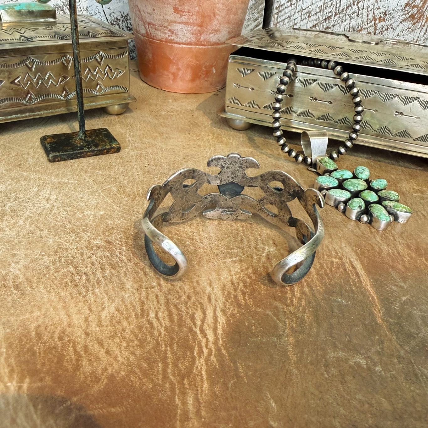 ~Sterling Silver Scroll Cuff (Tufa Cast) with Bead detail