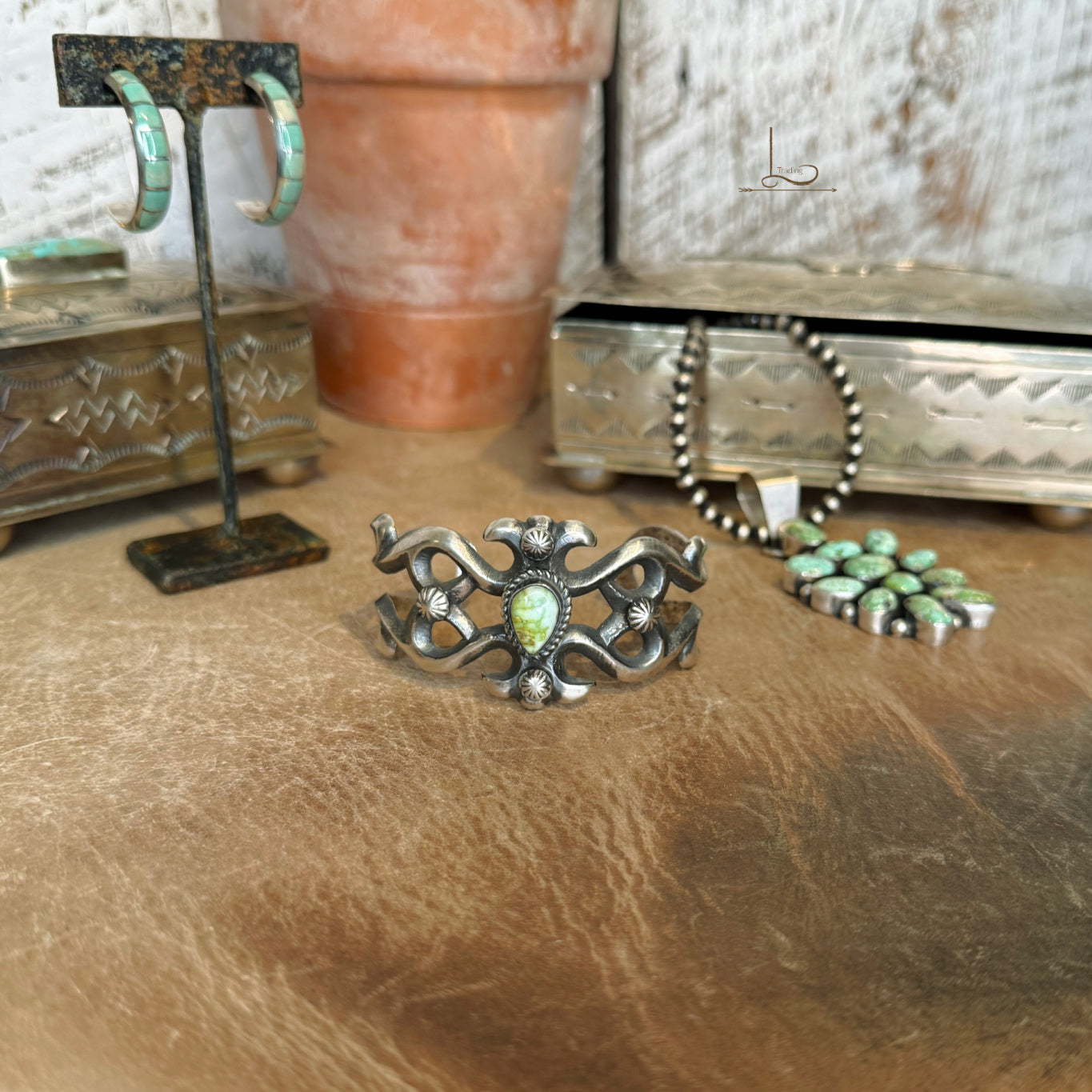 The Sonoran Turquoise Sterling Silver Cuff ~ Sonoran Turquoise with Sterling Silver Scroll designed cuff. A substantial amount of weight/Sterling Silver used to make this cuff. A Must for Your Collection~